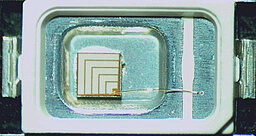 Las pantallas de gran superficie compuestas por paneles de led se utilizan para publicidad y anuncios, por ejemplo, en estadios deportivos. En una pantalla puede haber millones de led RGB. Cada una de las led RGB contiene un chip semiconductor que emite luz azul, verde y roja. Al dirigir las corrientes dedicadas a cada uno de estos tres chips, se puede conseguir una gran variedad de colores mezclando los espectros de emisión. Para encapsular los chips en el paquete se utilizan siliconas termoestables.