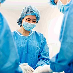 Le linge de salle d'opération doivent être stérilisé, mais il est aussi souhaitable d'appliquer une finition afin de réduire les germes et d'obtenir une action anti-bactérienne à long terme. Aujourd'hui, ceci est accompli par des suspensions contenant de l'oxyde de titane.