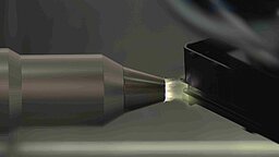 고객이 정의한 순서에 따라 생산 직원은 트레이에서 커넥터 스트립을 제거하고 스트립을 생산 셀로 이송하는 회전 테이블에 개별적으로 배치해야 합니다. 로봇이 커넥터 스트립을 픽업하여 처리할 부품의 측면과 함께 플라즈마 제트에 고정합니다. 부품을 처리한 후 다시 회전 테이블에 올려놓고 생산 셀 밖으로 회전시킵니다. 사이클 시간은 부품당 약 15초입니다. "기계의 직원 대신 다른 로봇을 통합하여 시스템의 충진 작업을 처리할 수 있습니다. 벨트 시스템 등으로 교체할 수 있는 로터리 테이블도 마찬가지입니다. 생산 공정에 필요한지 여부에 따라 제트 시스템을 이동할 수도 있습니다. 이를 통해 고객의 요구 사항에 완벽하게 맞춘 매우 유연한 노천 플라즈마 시스템을 제공할 수 있습니다."라고 Schüßler는 설명합니다.