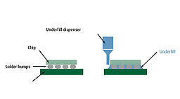 高且均匀的表面能是填充材料实现可靠润湿与无缝流动的关键前提。Openair Plasma®技术可在在线工艺中直接活化基板表面,确保底部填充材料实现最佳分布与可靠附着。同时彻底清除切割工序产生的微细颗粒与残留物。最终实现:完美的填角形成、显著减少气泡(空隙),以及在日常使用和应力条件下提供最大可靠保护的封装效果。